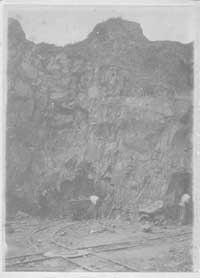 A similar view in the same quarry.  Close study reveals the general tools of the trade, cobbing hammers, bars, picks and barrows.  The layout of the mineral tracks was obviously very extensive.