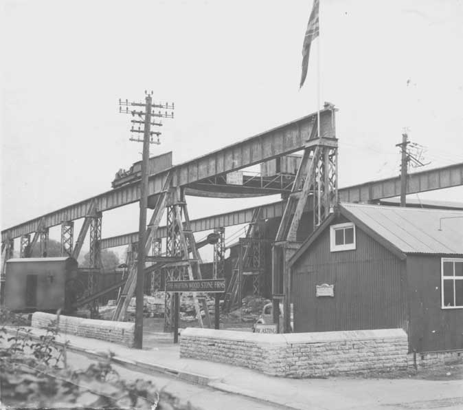 It is interesting to note that this new steel gantry crane is situated on the opposite side of the road to the original crane and stone buildings erected some years earlier.  It was, according to a reliable source, removed in about 1938.  The only remaining identifiable feature of these structures is the section of wall in the foreground with unusual triangular section limestone copings, gritstone copings being much more characteristic of the local style for walling.