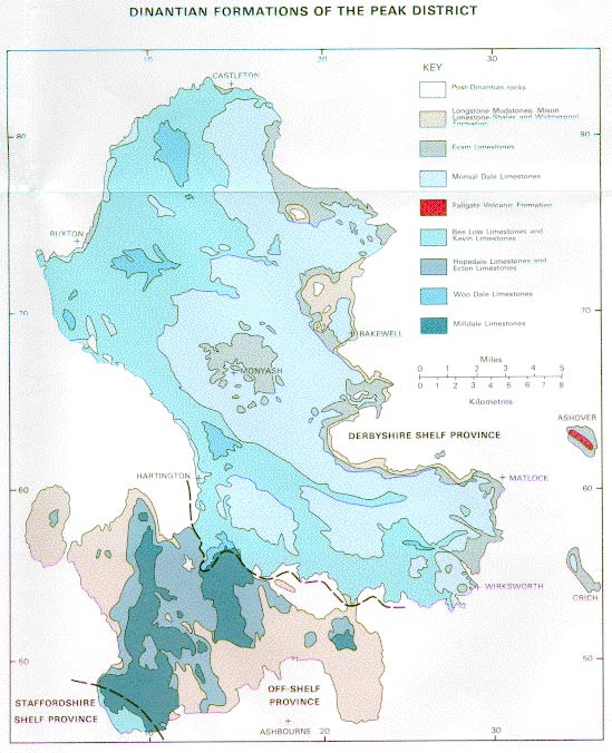 A detail from the geological map of the area, showing the relative position of the Hopton-Wood Stone series within the Bee-Low sequence.